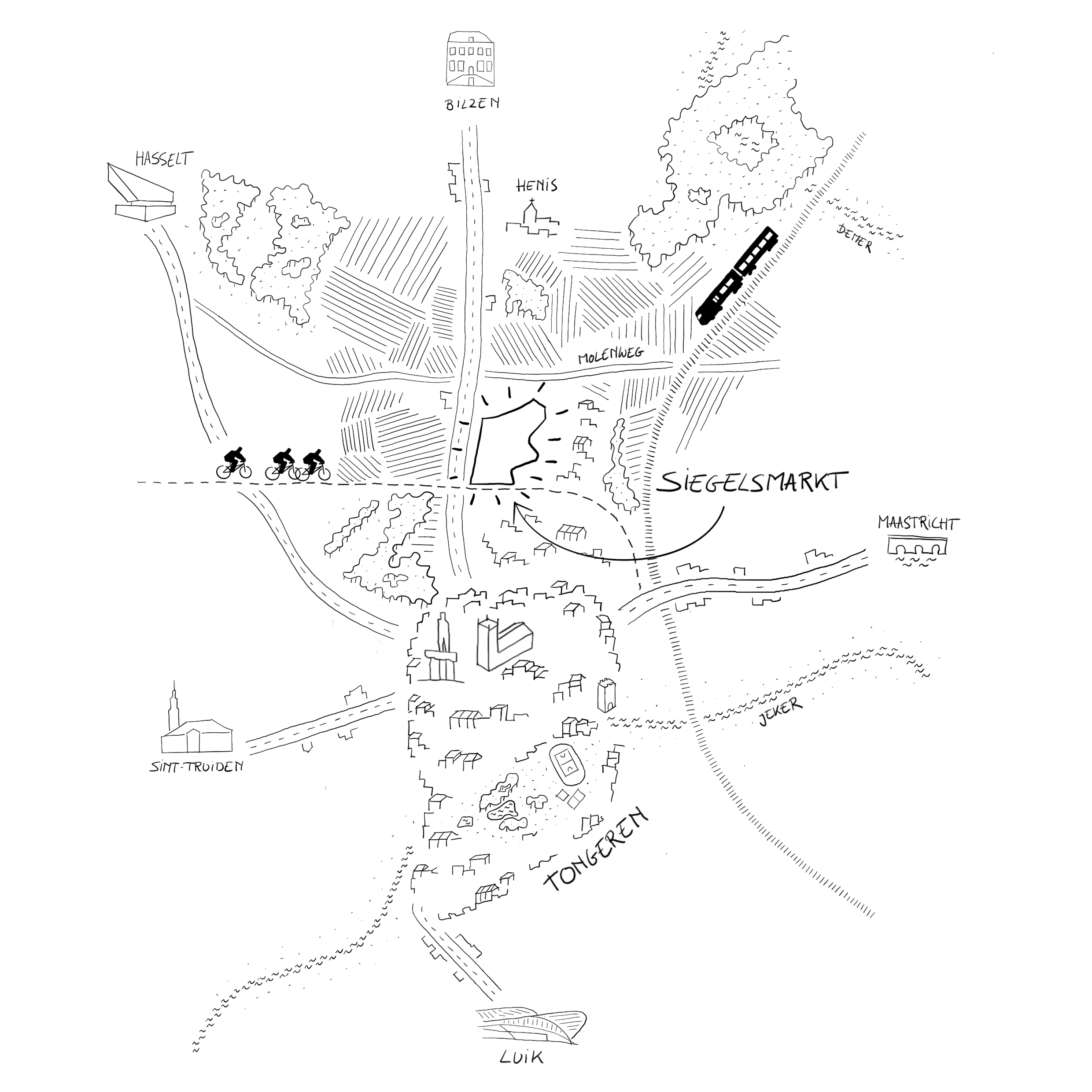 PLUSOFFICE ontwierp samen met Agmen Architecten en Kollektif Landscape een stedenbouwkundig, landschappelijk en architecturaal ontwerpvoorstel voor een nieuwe ambitieuze, betaalbare en sociale woonontwikkeling in Tongeren. Het glooiende landschap inspireert. Maar het botst ook letterlijk op de bestaande context. We maken een nieuwe woonomgeving, de Siegelstuin, waar buurt en landschap elkaar versterken door een veelheid aan relaties en interacties met elkaar aan te gaan. Het publieke landschap vormt een onderlegger waarop gebouwd wordt en die een betekenis krijgt voor de brede buurt. Het centrum van Tongeren en de bestaande randverkavelingen worden verweven met het Haspengouwse natuurlandschap.